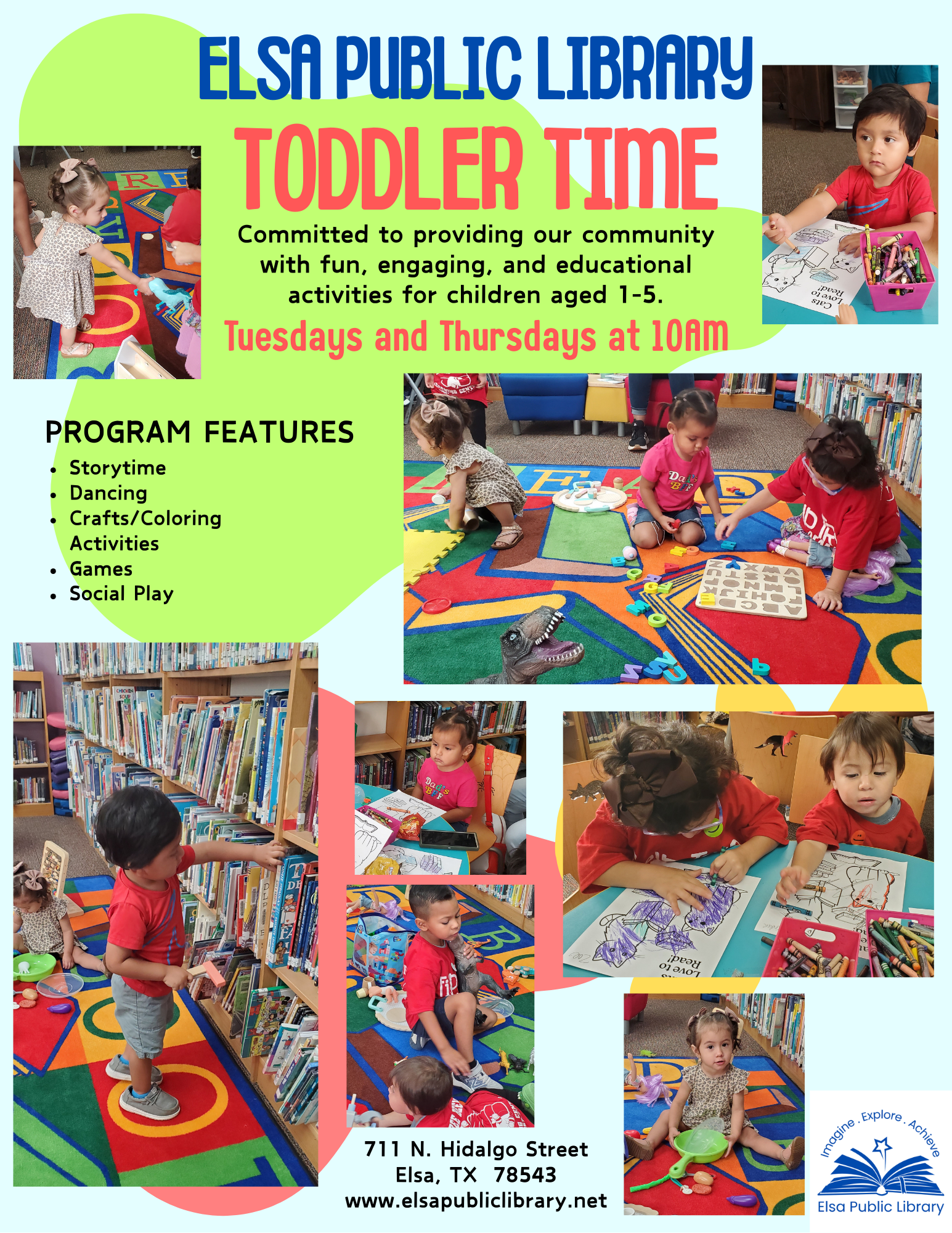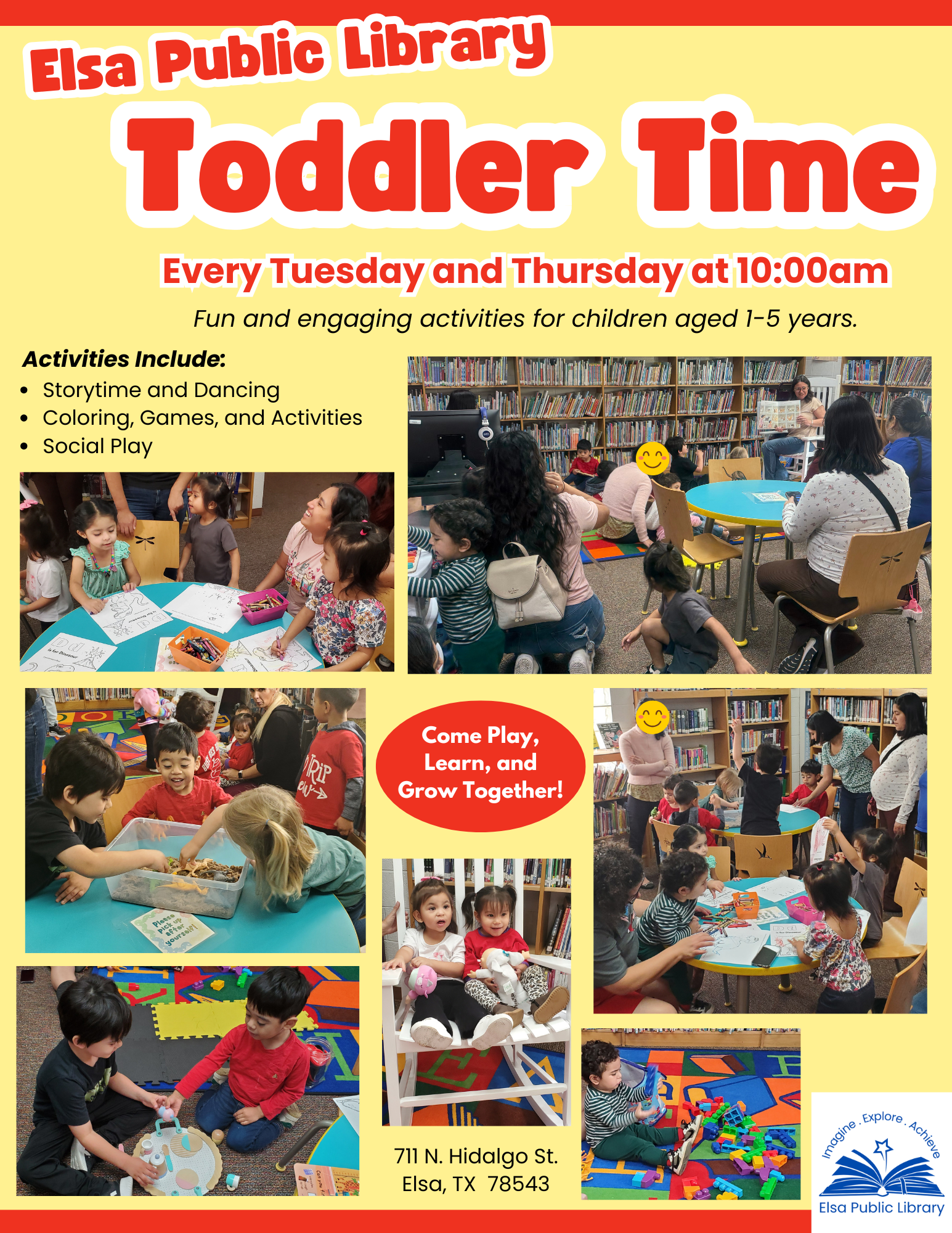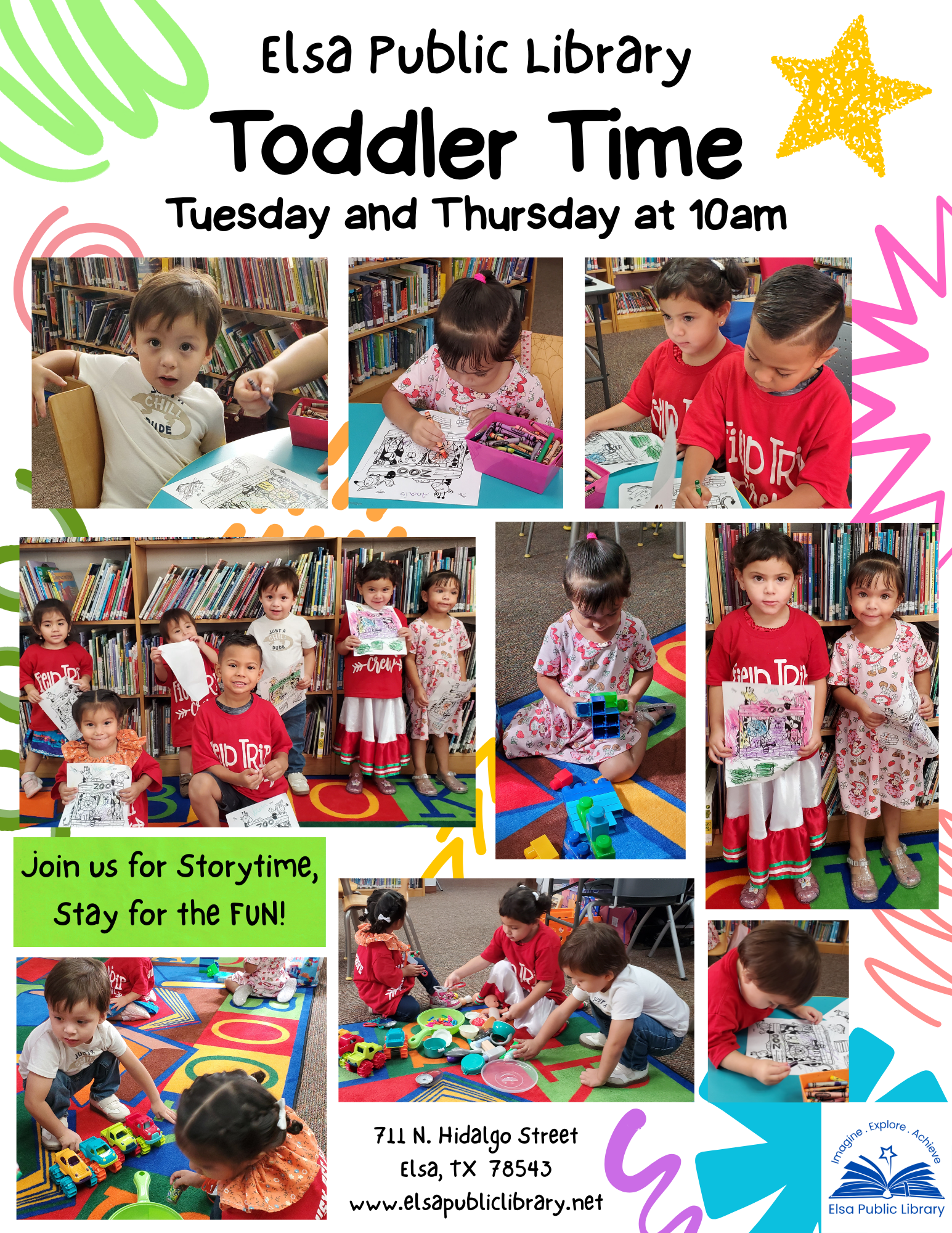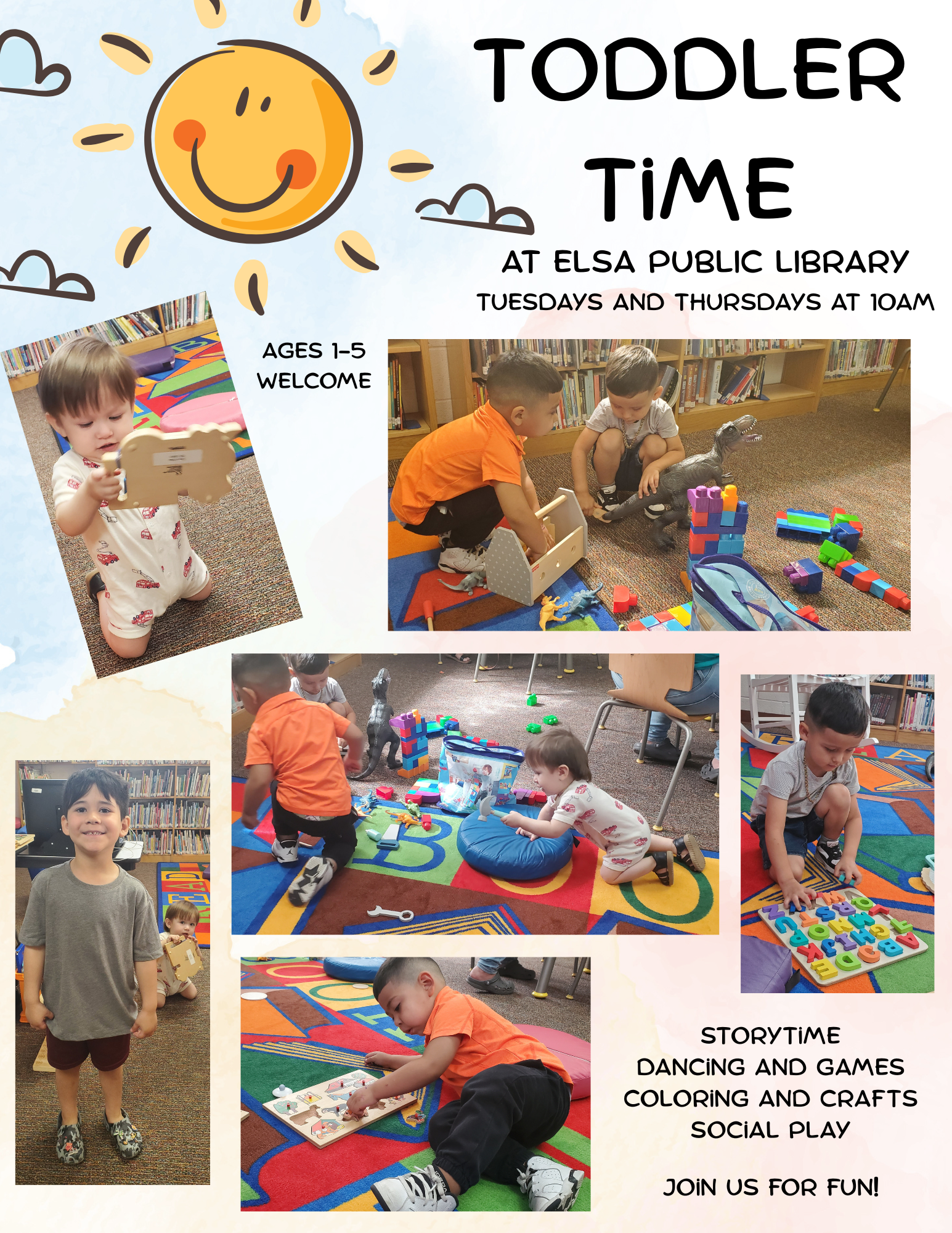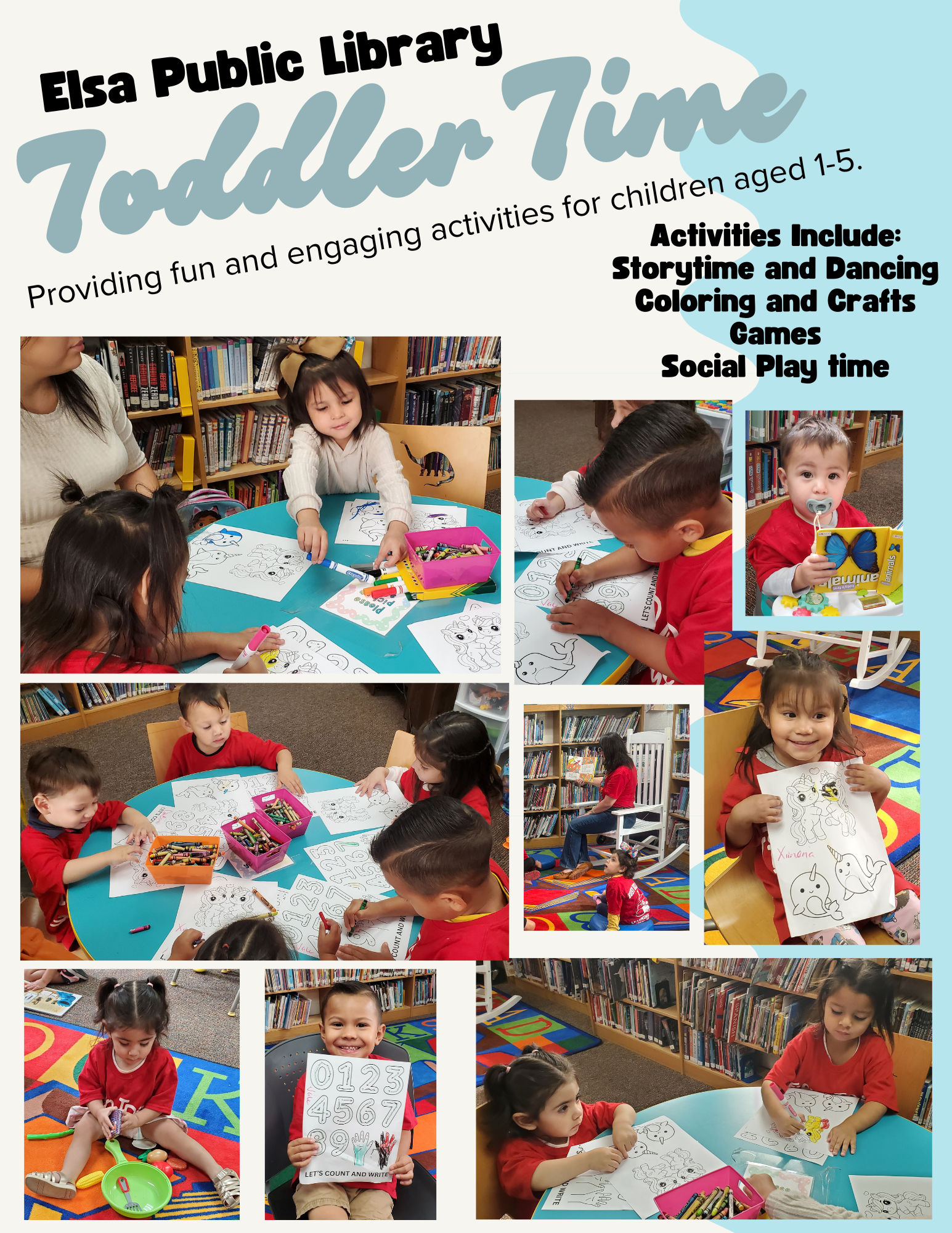 All Storytime books read for Toddler Time are within the Elsa Public Library children’s collection and may be checked out with a valid library card.